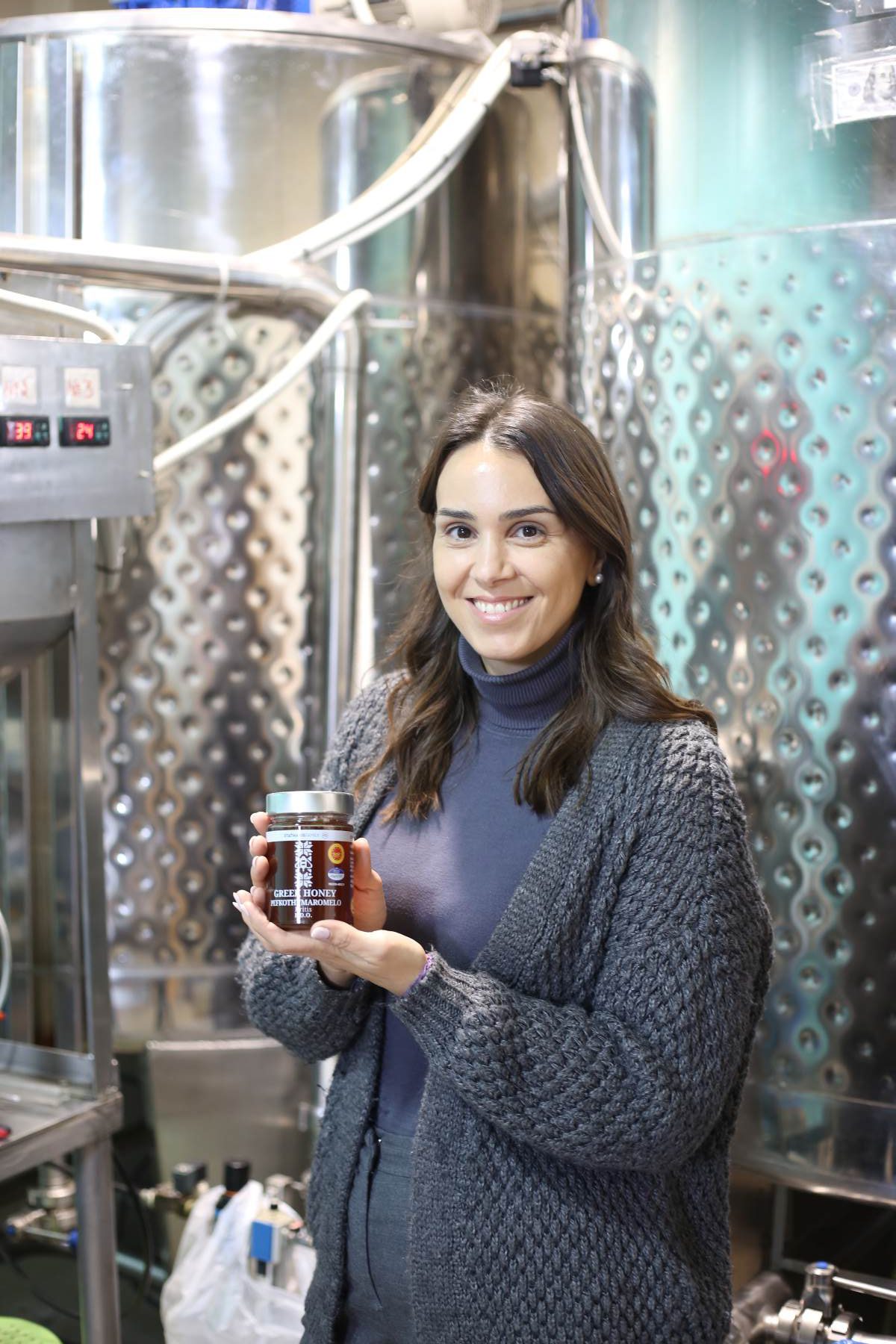 Eleni Fragkiadaki er salgssjef i Stathakis. Selskapet har et besøkssenter utenfor Kissamos der man kan smake og kjøpe honning, og honningrelaterte produkter. Foto: Stian Bromark.