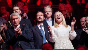 Oslo 20121211. Nobels fredspris 2012. Thorbjørn Jagland, kronprins Haakon, kronprinssesse Mette-Marit under nobelkonserten i Oslo tirsdag. Bak mellom de to kongelige ses Marius Borg Høiby. Foto: Thomas Winje Øijord / NTB