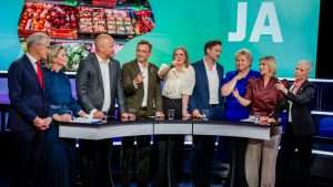 Bergen 20250819. Partilederne under den direktesendte partilederdebatten på TV2 som sendes fra Media City i Bergen tirsdag kveld. Foto: Paul S. Amundsen / NTB