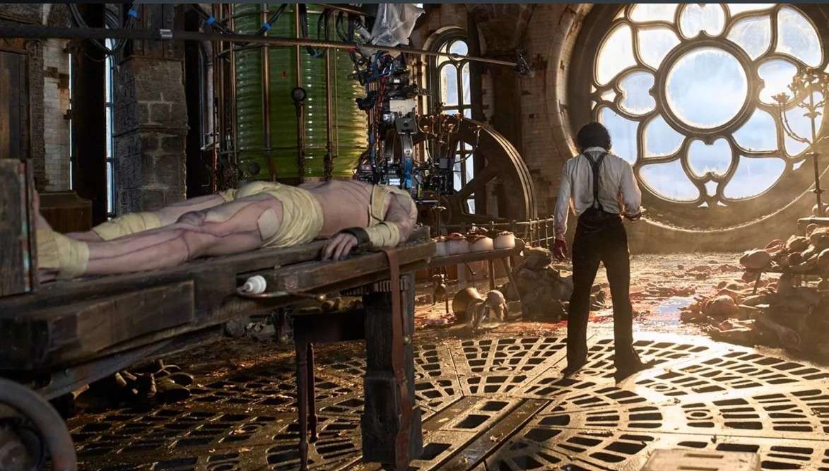 Skuespiller Jacob Elordi forvandles til Frankensteins monster i regissør Guillermo del Toros nye film, som kan ses på Netflix. Foto fra filmen.