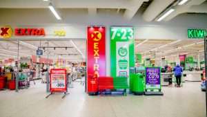 Sætre 20240131. Dagligvarekjedene Coop Extra og Kiwi har butikker side om side på Sætre Nærsenter. Dagligvare. Foto: Stian Lysberg Solum / NTB