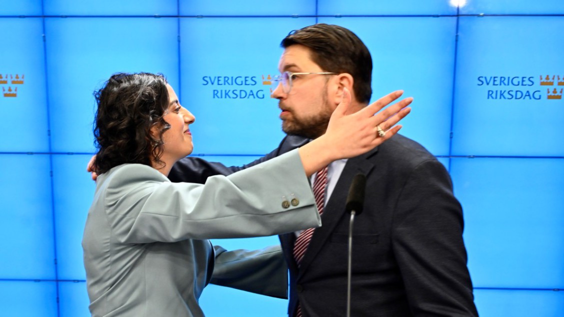 Flere av mine verter tolket omfavnelsen som nok et jordskred, på en høyreside som ikke lenger ser ut til å ha noen forsvarsverker igjen mot de autoritære og illiberale kreftene ytterst til høyre. Mange husker fortsatt Moderaternas leder, statsminister Ulf Kristersson, som for få år siden ga et løfte om at han aldri skulle samarbeide med SD, «om så Sverige gick åt skogen».